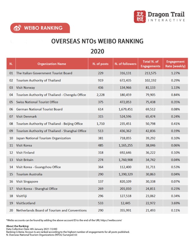 We helped Visit Finland developing its Weibo account from scratch in 2013. The number of followers increased to 709,690 by 31.3.2021. The number of reads of one post was 25,000-80,000, while the most popular post was over 6 million. Among 52 overseas national tourism organizations, Visit Finland ranked No.12 based on total number of engagement in 2020.